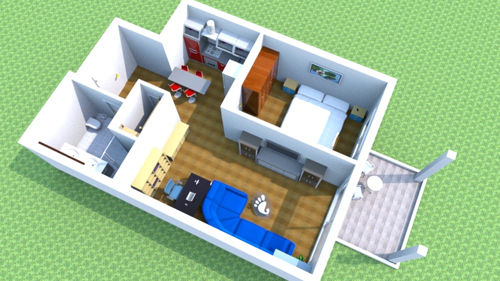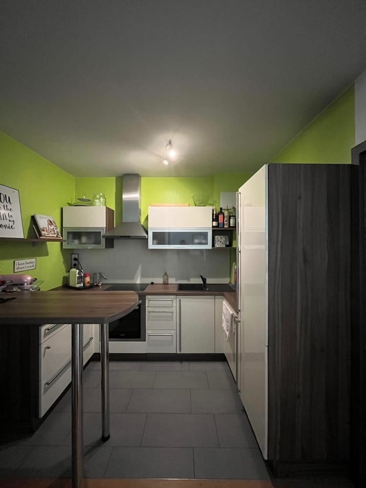 Die offene Gestaltung des Wohnbereichs mit integrierter Einbauküche schafft eine einladende Atmosphäre. Von hier aus gelangen Sie auf die nach Westen ausgerichtete Terrasse, die dank zweier elektrischer Markisen flexibel nutzbar ist. Ein kleiner Gartenanteil, den Sie selbst pflegen, grenzt direkt an.